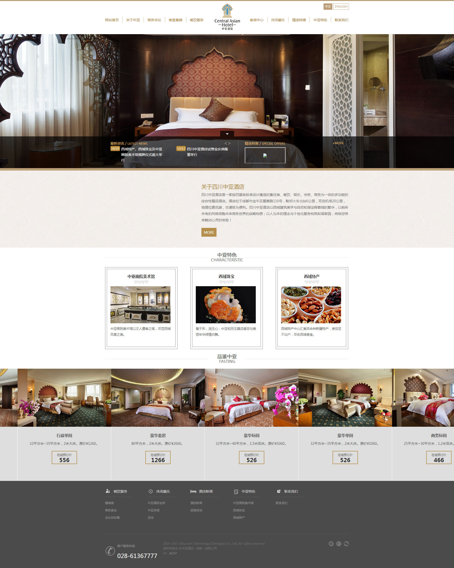四川中亚酒店是一家按四星级标准设计建造的集住宿、餐饮、会务、娱乐、商务为一体的多功能综合性精品酒店。酒店主楼高15层,副楼高6层,建筑面积31500平方米。酒店拥有各类客房196间(套),以西域风情为装修格调的标准间、单人间、豪华套房、特色房、行政套房等,内设独立卫浴、保险箱、迷你吧等生活设施,提供免费有线和无线宽带互联网连接、国内电话服务、有线电视网络、个性化叫醒服务、洗烫服务、擦鞋服务及定制化管家服务等,全智能房间控制系统、电子门锁、照明与通风自动感应系统等现代高科技应用服务,更显住宿、休憩的私密与高