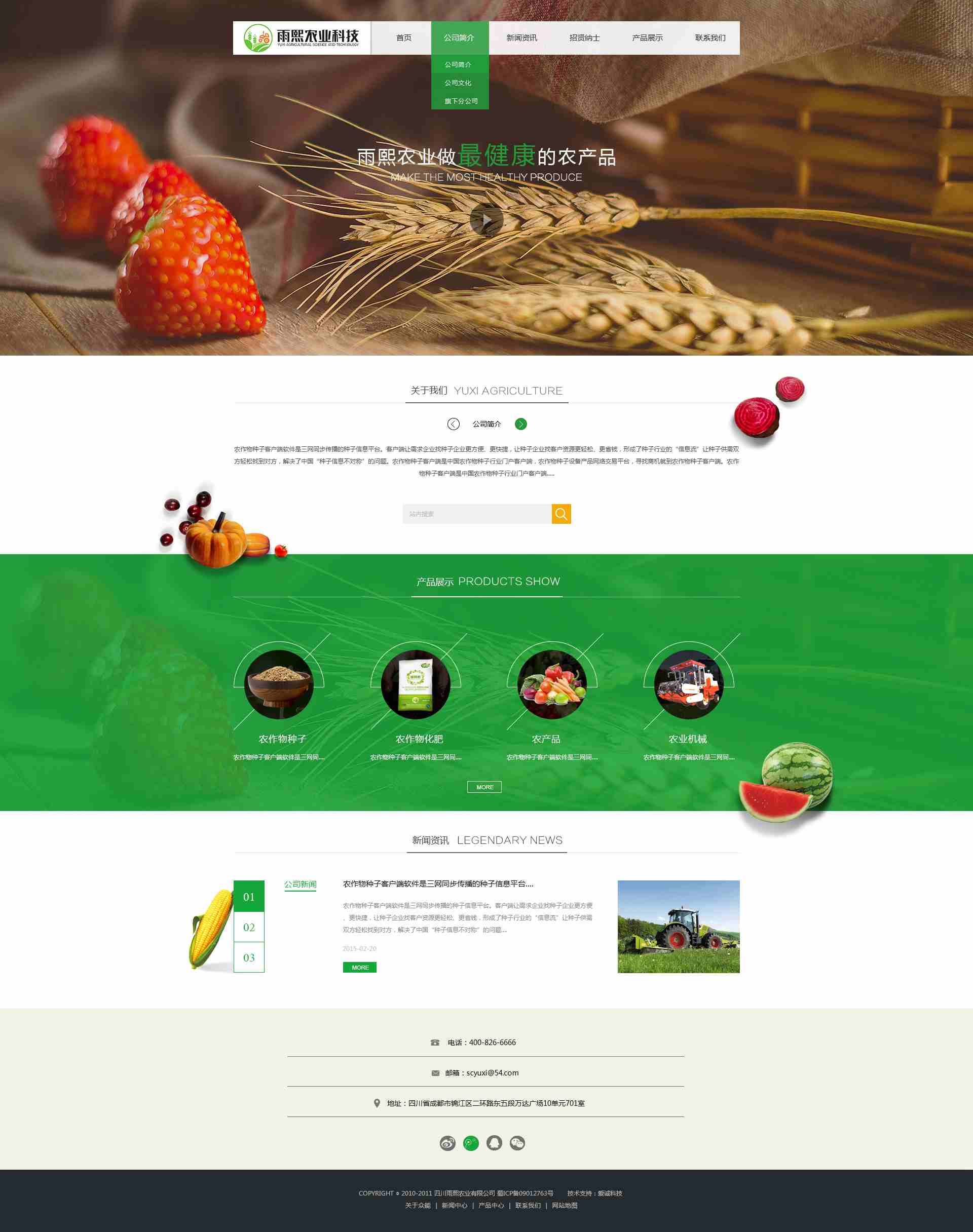 四川雨熙农业科技有限公司是一家民营高科技农业企业,公司主营业务:农作物种子(杂交水稻、杂交玉米、蔬菜、水果、花卉)的研究、生产及经营;农业机械生产、经营;大米加工及经营;肥料的生产及经营;进出口贸易。