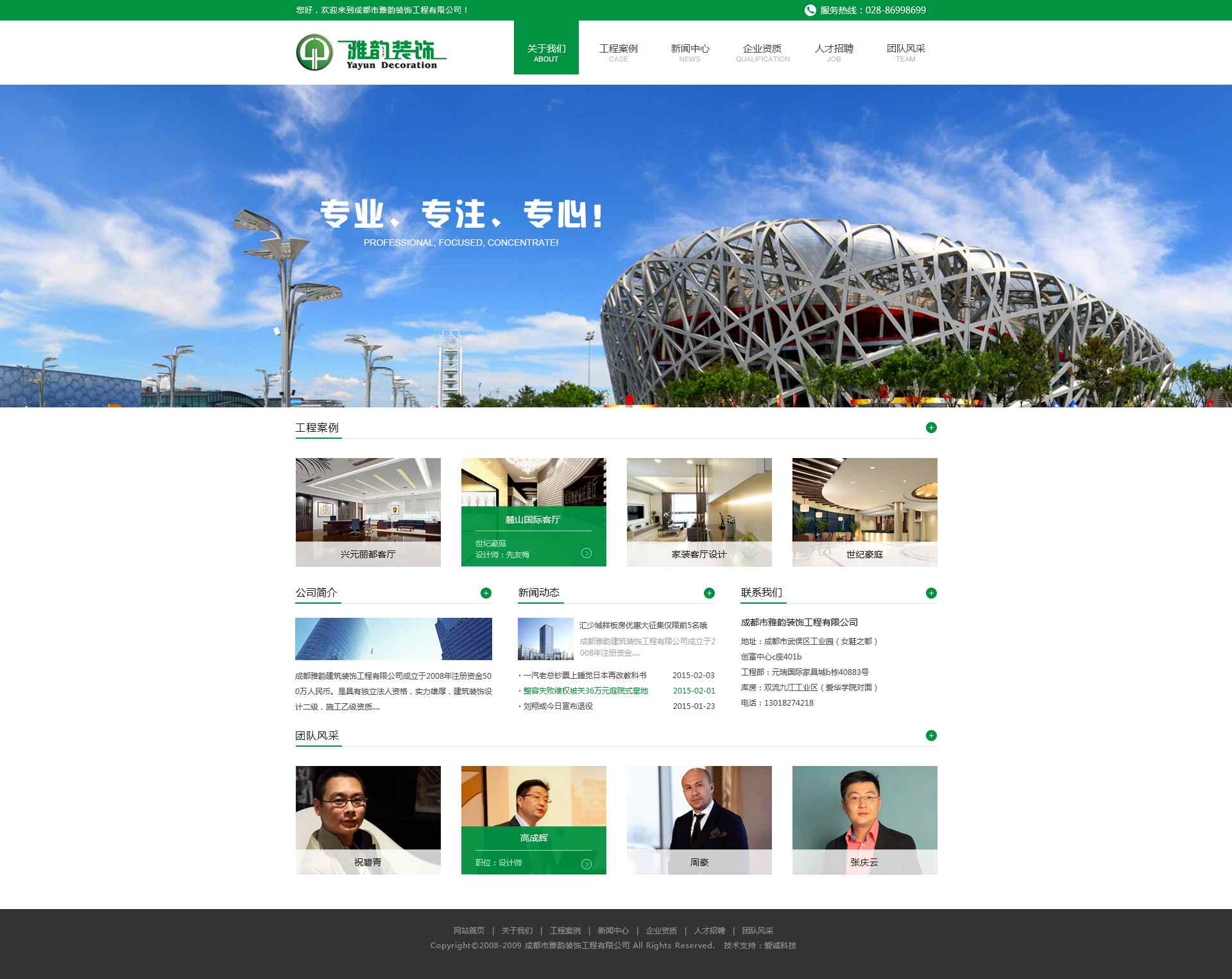 成都市雅韵装饰工程有限公司(家具行业知名品牌)是一家专业从事家具卖场装修,展厅展示,办公楼装修为主的具有专业资质的正规装饰公司。公司成立于1996年,前期为四川省艺术学校雅韵创作室,2002年更名为彭州市雅韵广告装饰设计所--专业从事家具展厅设计 装修 卖场策划。由于公司发展需要2010年更名为成都市雅韵装饰工程有限公司。有专业项目经理10名,施工管理员12名,18个项目工组,固定工人200多名。合作的主要设计公司有:深圳鲁狼 深圳大名堂,深圳大唐盛世,成都昱美,成都概念国际等。主要装修区域:八一家具城