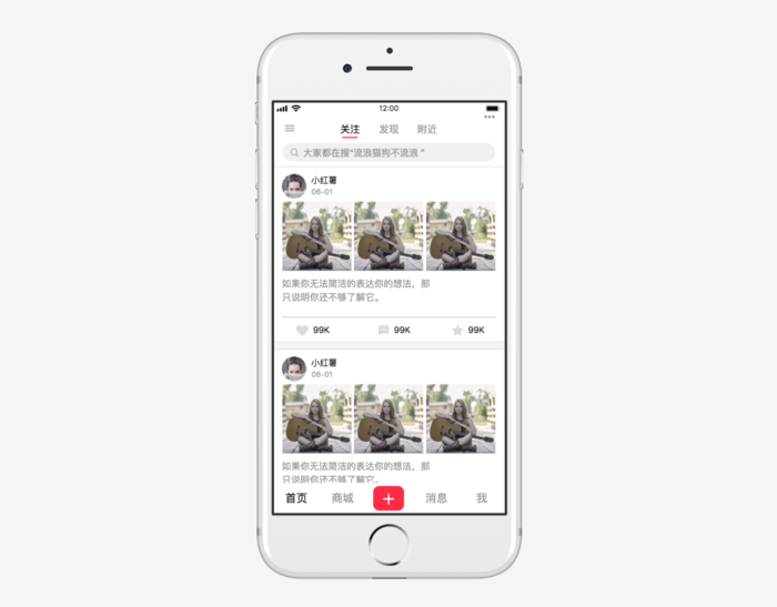 1)有一个核心功能比其它功能更重要,更需要强调。常见于UGC产品,比如微博、闲鱼、抖音以及原型案例中的小红书。
