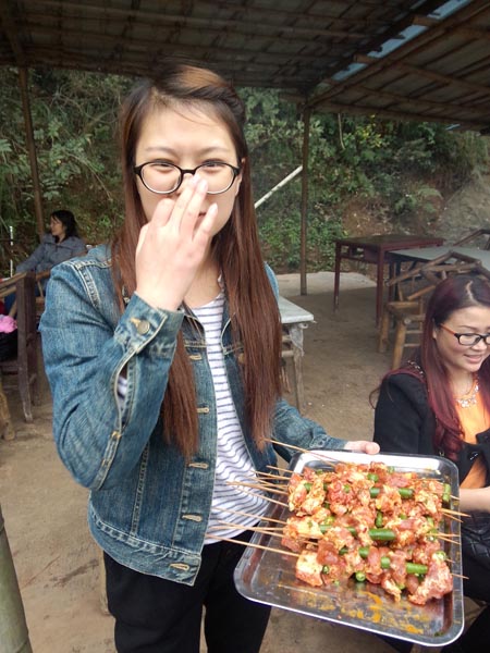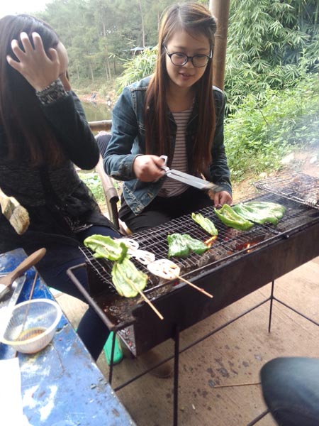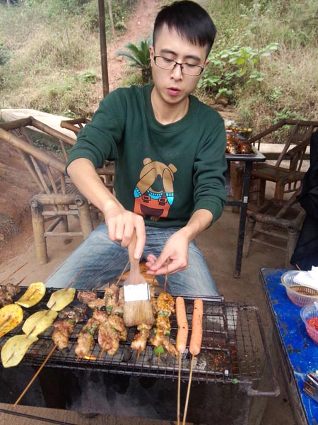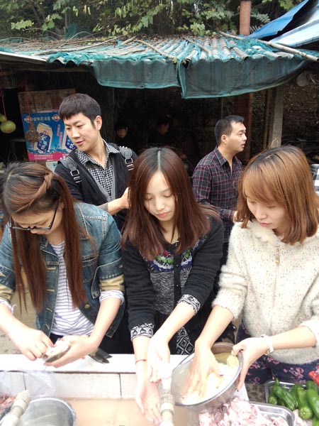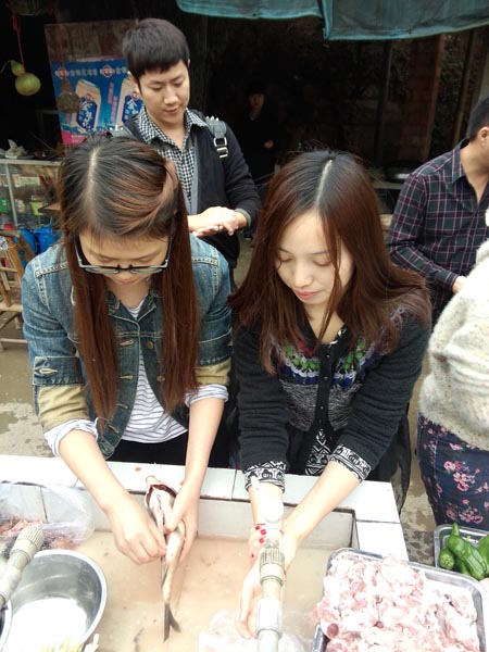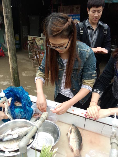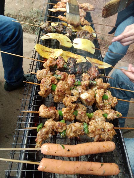 当时看着这盘与嘎嘎,就都留口水了,我们鱼儿买多了,居然大家现场做起小贩来了,还卖掉了几条鱼和几串排骨,居然买了80元,看来我们公司可以下班后去摆地摊了